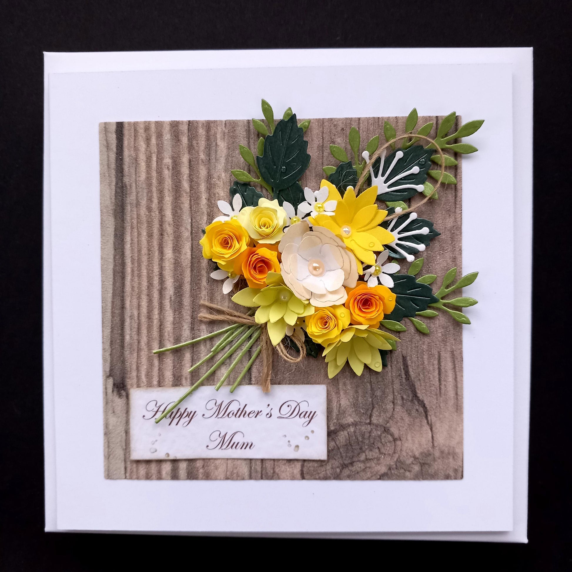Handmade Luxury Birthday Card * Personalised * Boxed * 3D * Unique Rustic Style with Yellow Bouquet