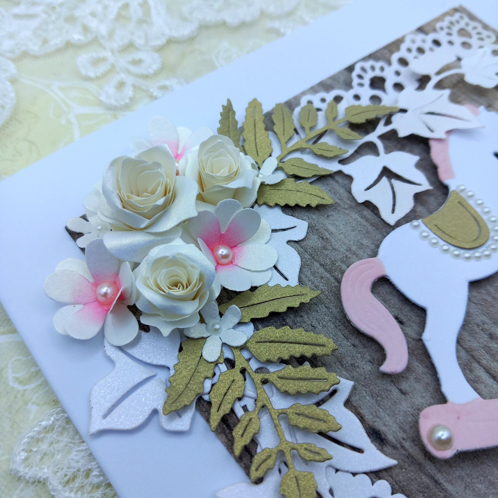 All of my cards have been designed and made by myself and I pay great attention to detail. I make my own flowers and leaves etc using cutting dies.