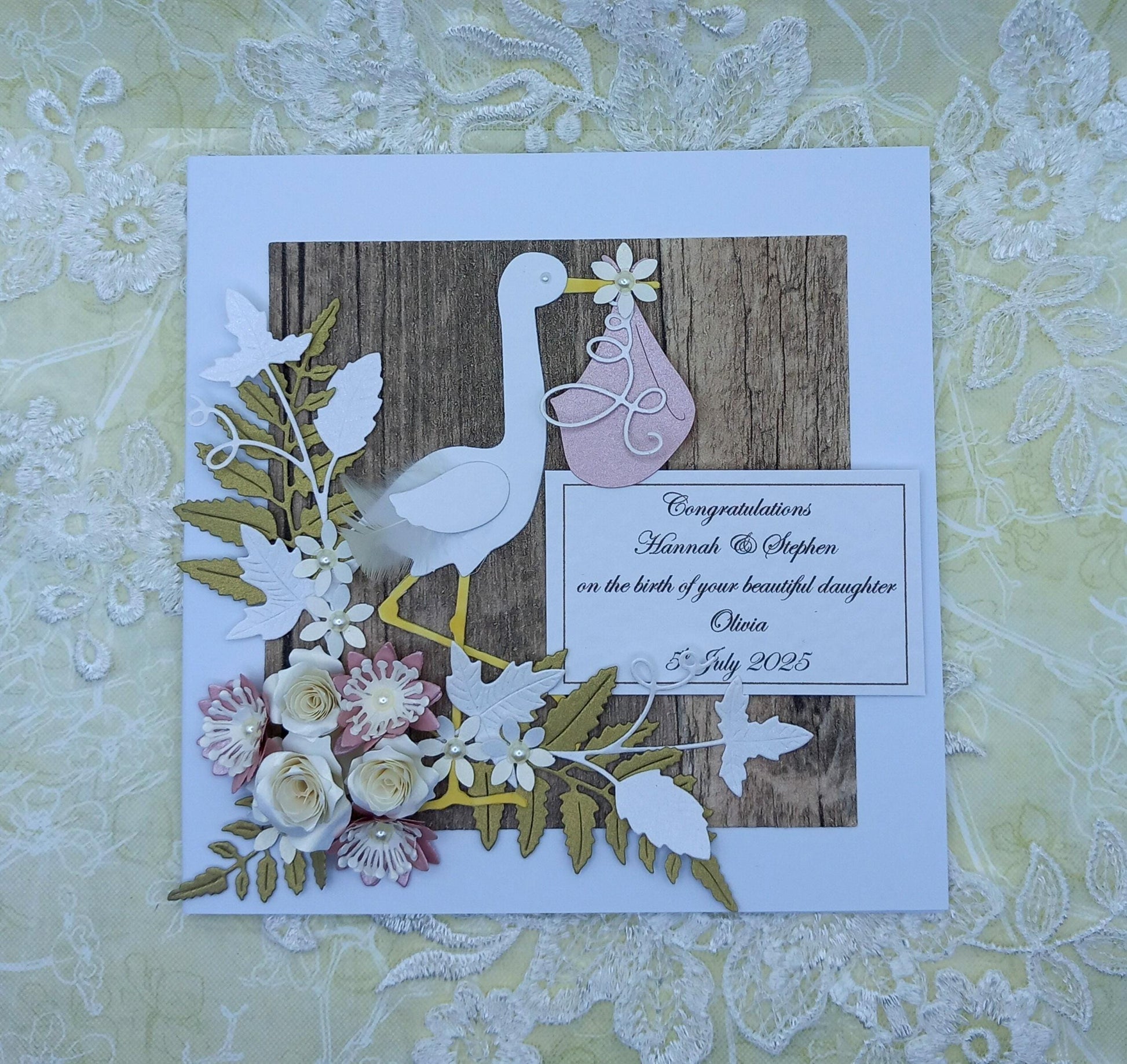 Unique, Handmade New / Birth of Baby Girl Card * Rustic Style * 3D * Personalised * Boxed * Luxury