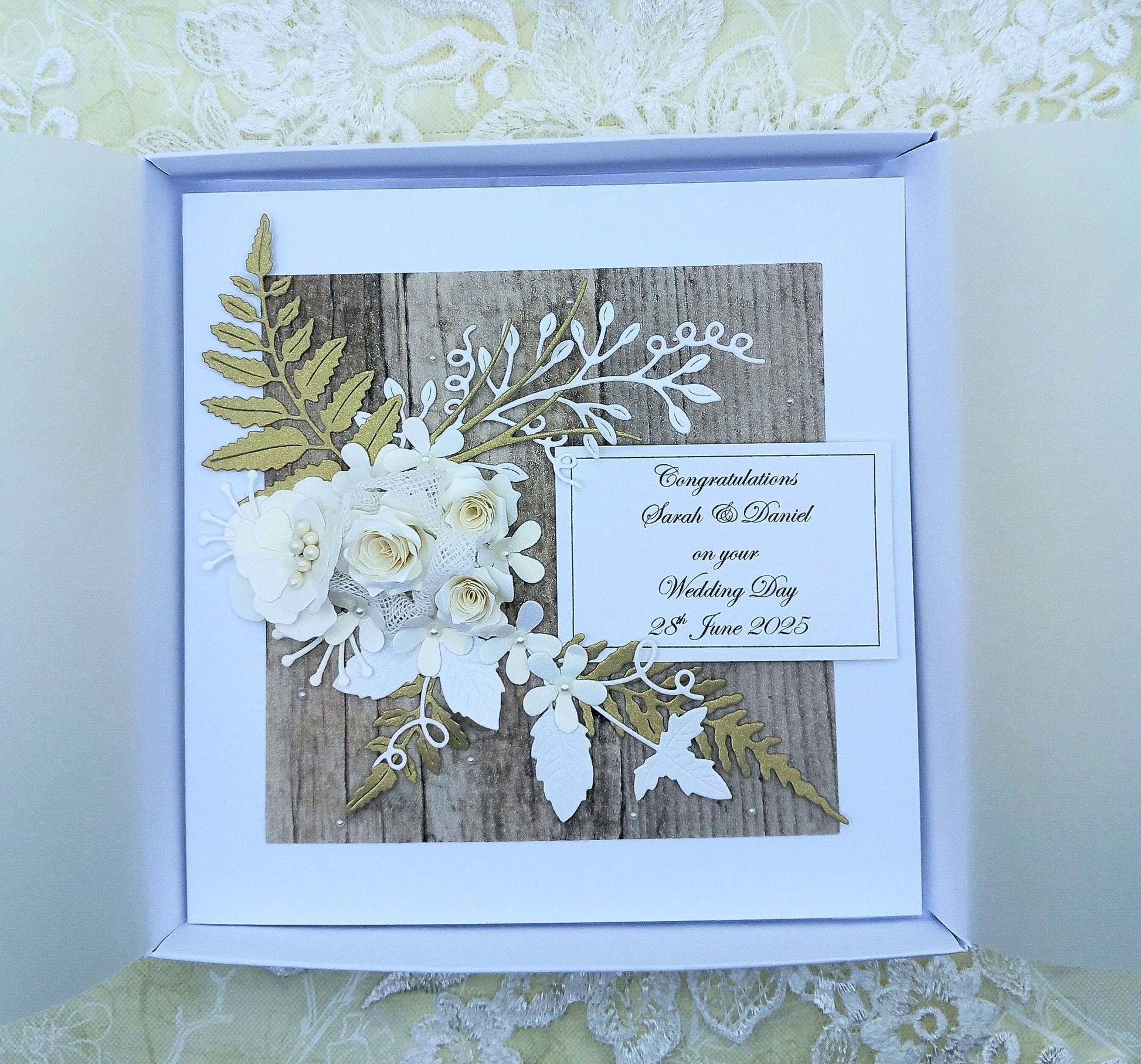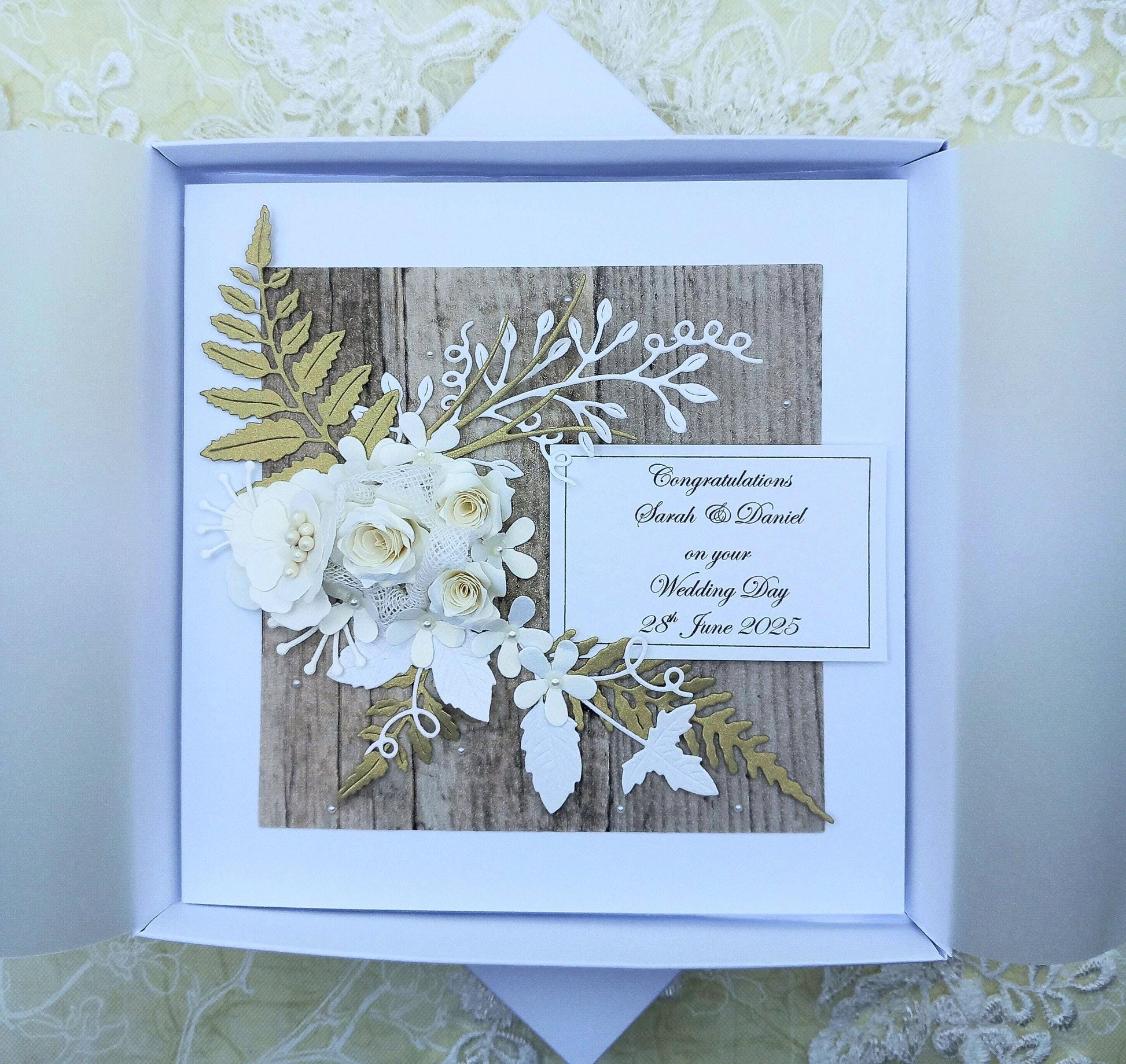 Unique, Handmade, Wedding Day / Anniversary Card * 3D * Personalised * Boxed * Rustic Style / Luxury
